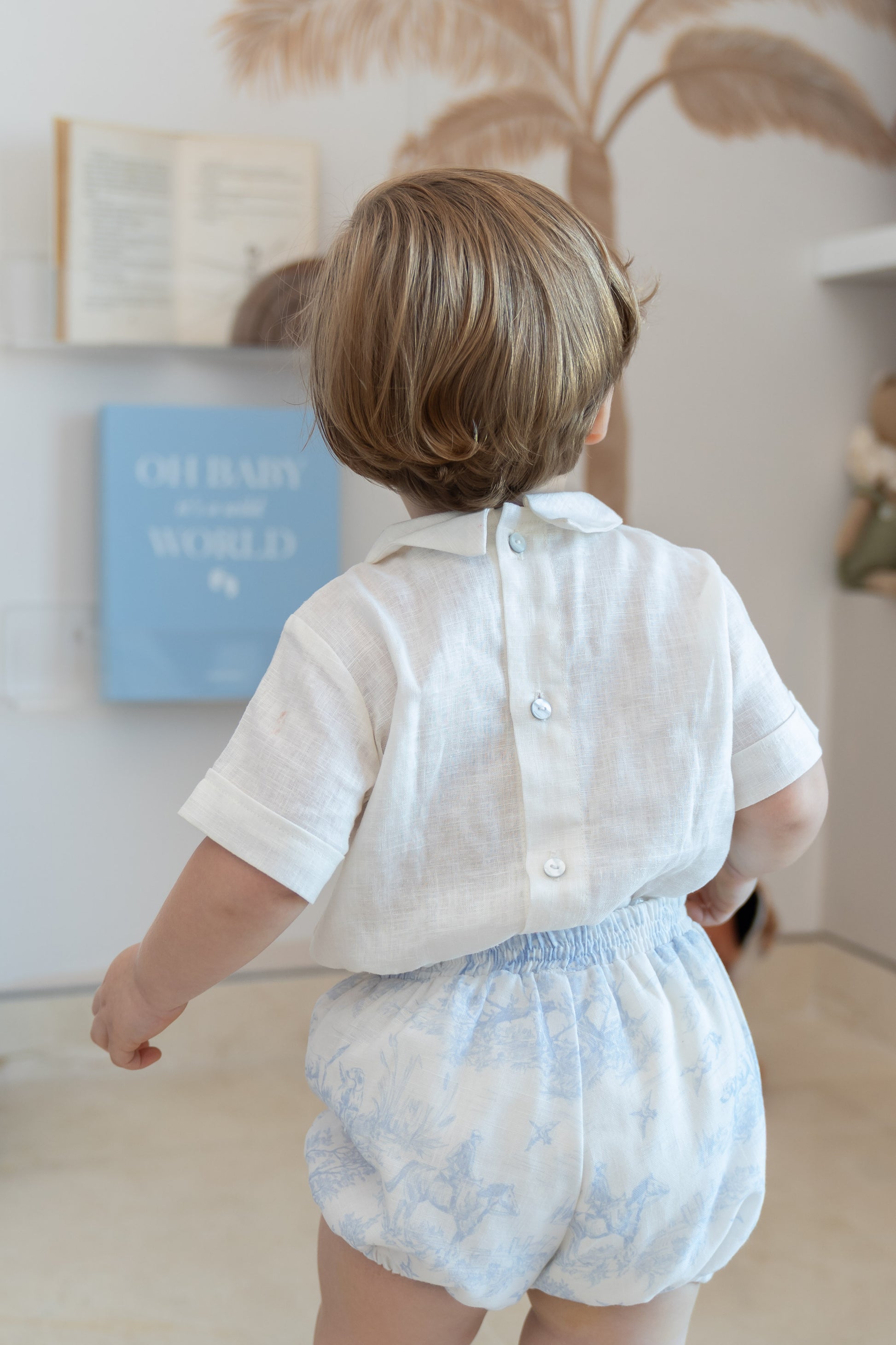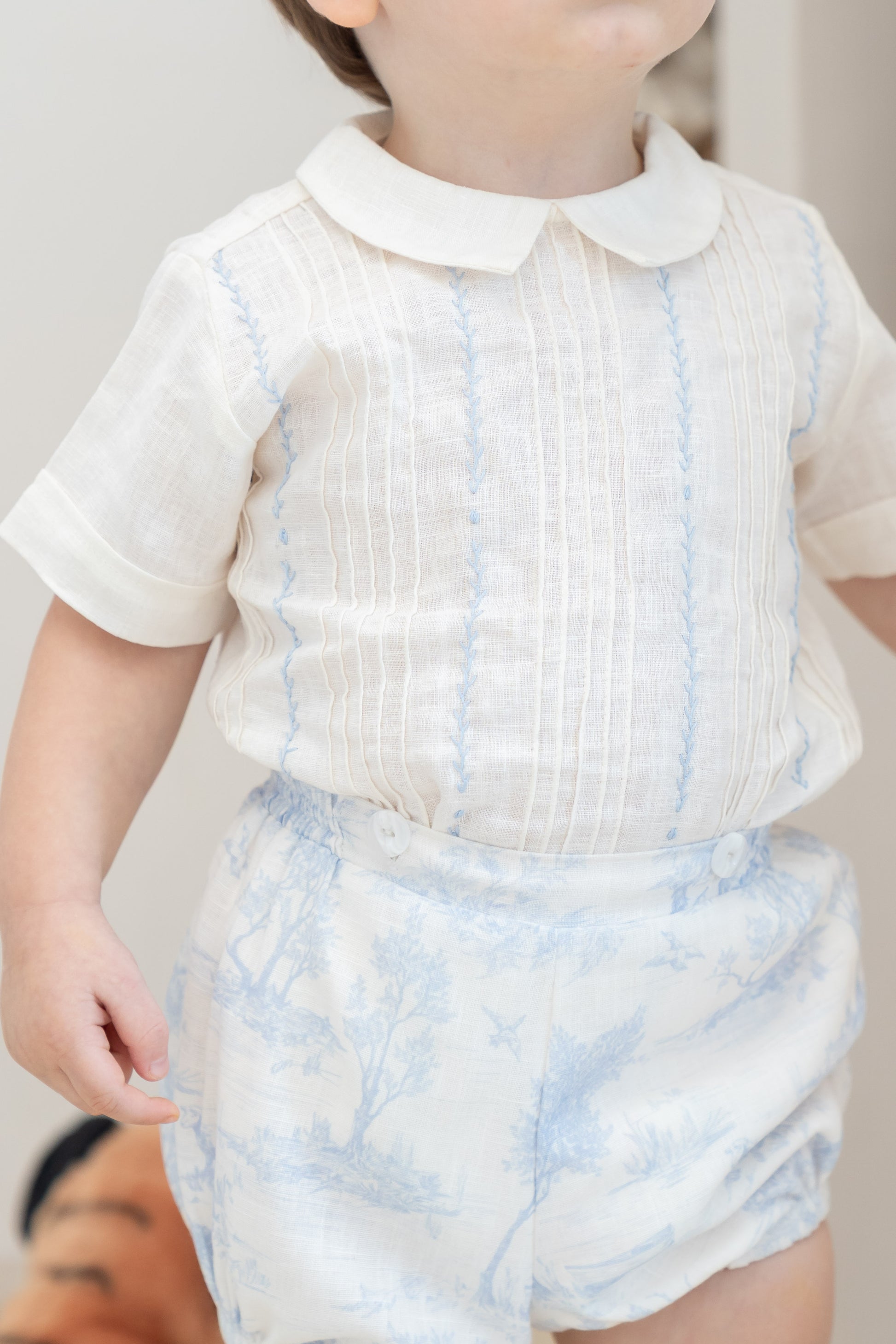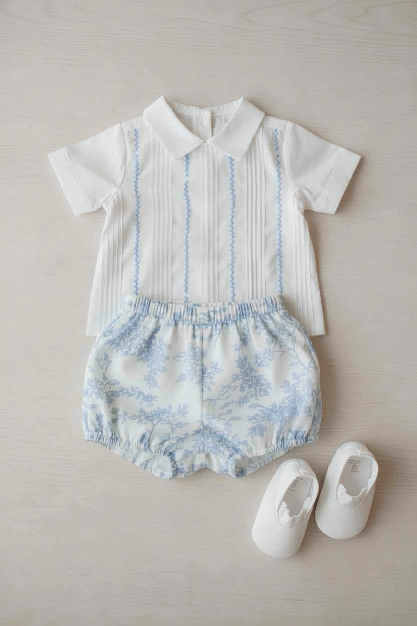 Camisa en Lino con bordados a mano y Culote en Lino y short para tallas 3-4