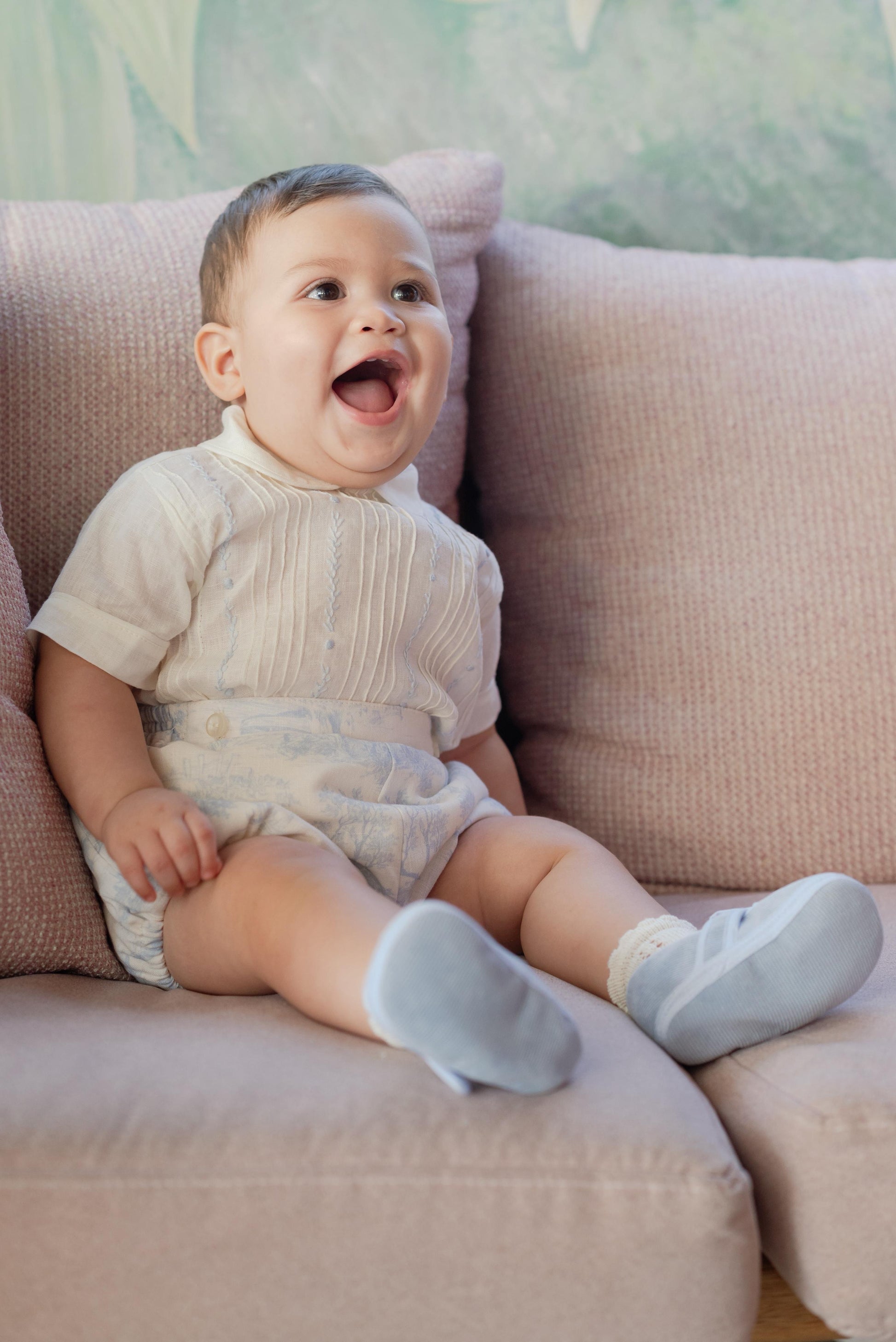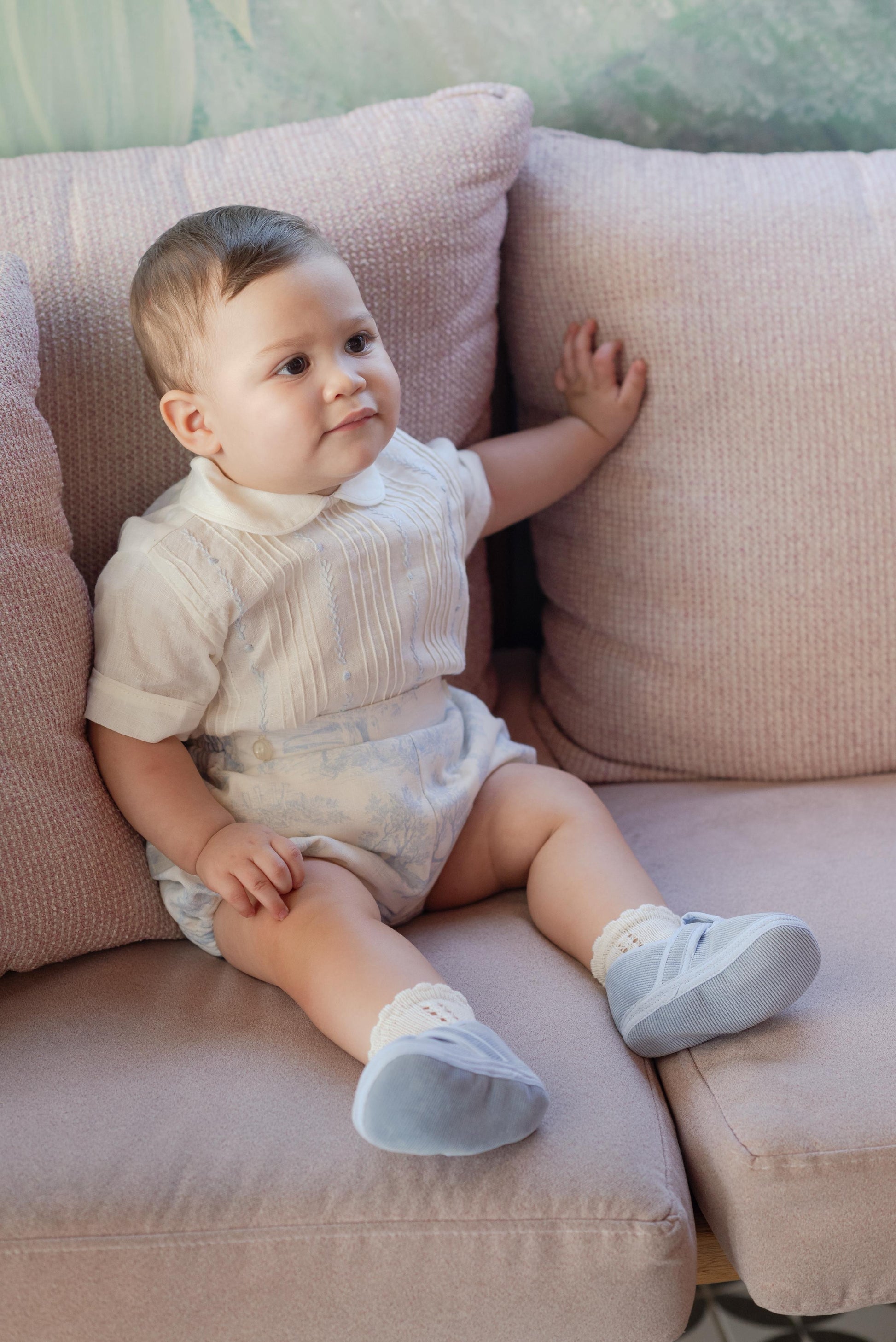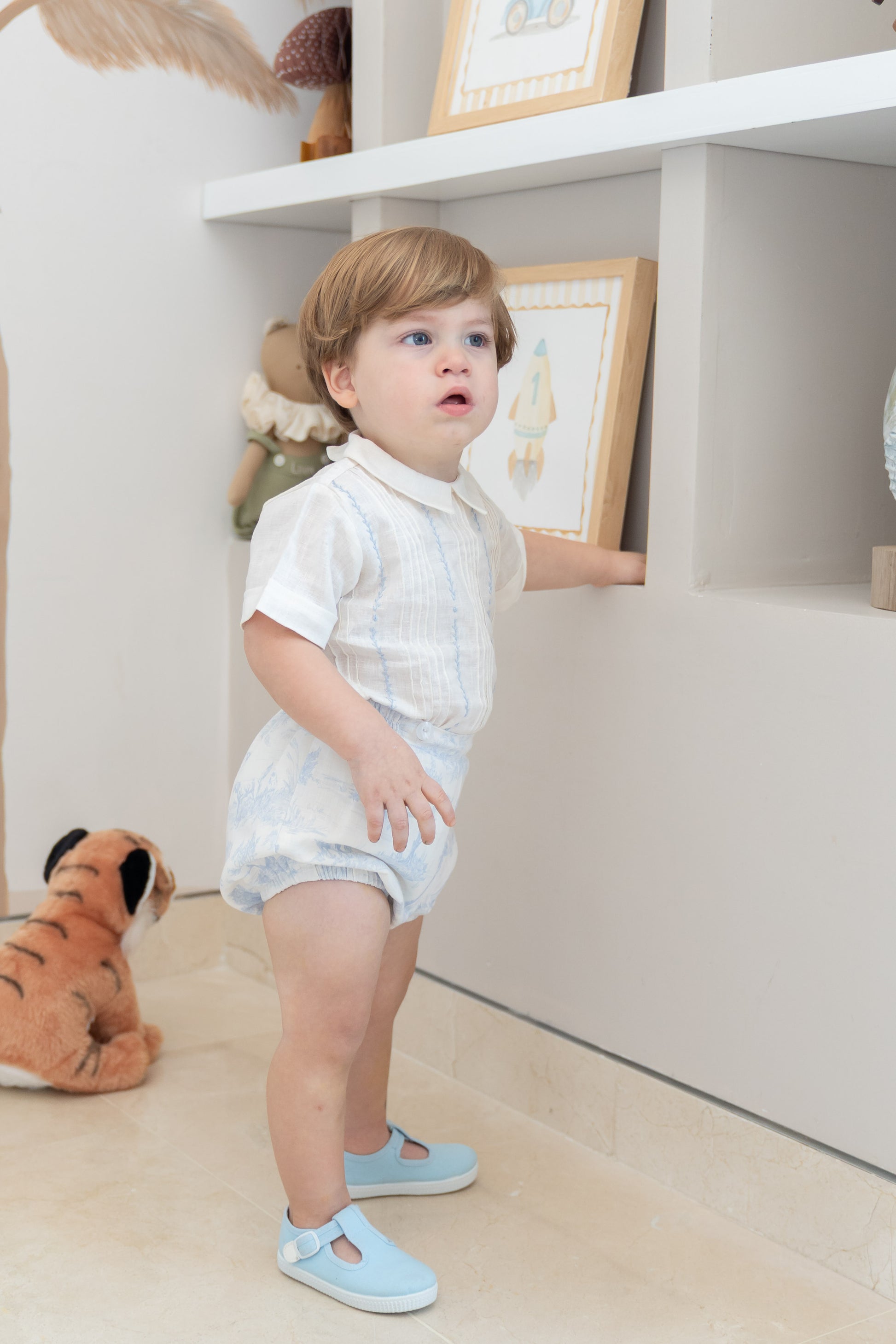 Camisa en Lino con bordados a mano y Culote en Lino y short para tallas 3-4